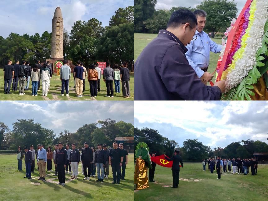 在庄严肃穆的红军烈士纪念塔前,全体学员整齐列队敬献花篮、整理缎带,向为国家和人民英勇献身的革命烈士默哀致敬。默哀结束后,学员们面向鲜艳的中国共产党党旗,庄严地高举右拳,再次重温入党誓词。铿锵有力的誓言声声入耳,久久回荡在这片浸染革命热血的红土地上空,成为了激励每位学员砥砺前行、不懈奋斗的生动见证。