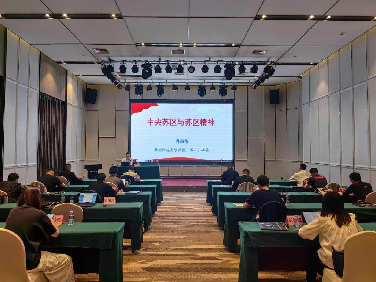 开班仪式结束后,赣南师范大学肖扬伟教授以《中央苏区与苏区精神》为题,为全体学员带来专题党课。肖教授结合丰富史料与生动案例,系统梳理了中央苏区从1929年艰难创业到1935年浴血坚持的6年历程,详细解读“坚定信念、求真务实、一心为民、清正廉洁、艰苦奋斗、争创一流、无私奉献”的苏区精神核心内涵。课上,他通过罗荣桓元帅为信念弃家革命、杨荣显八子参军壮烈牺牲、“腰缠万贯的讨米人”刘启耀坚守初心等故事,生动诠释苏区军民的家国情怀与奉献精神;同时结合寻乌调查、兴国调查等实践,阐释“没有调查就没有发言权”的求真务实作风,让学员深刻理解中国共产党“能”、马克思主义“行”、中国特色社会主义“好”的历史逻辑与实践逻辑。